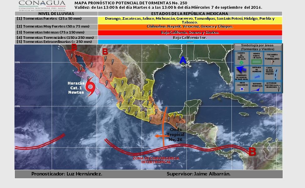 El huracán Newton podría degradarse a tormenta tropical en las próximas horas e internarse en el golfo de California para ingresar a tierra nuevamente la madrugada del miércoles en las costas entre Hermosillo y Guaymas.
