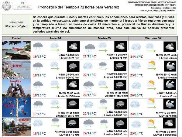 El mal clima en Veracruz continuará el día de mañana, martes 5 de enero, pero espera que empiece a mejorar hasta el miércoles.