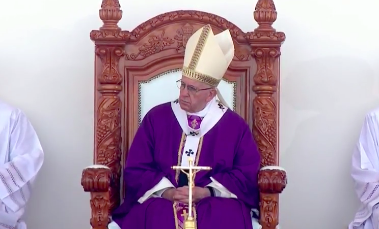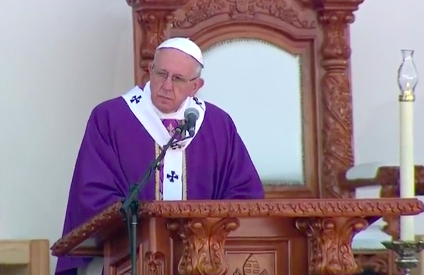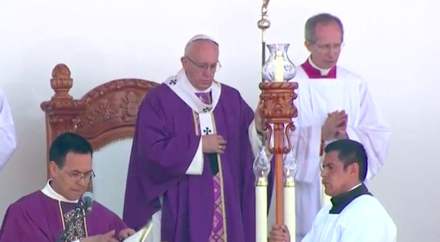 El papa Francisco citó al Padre Nuestro, diciendo que se pide no caer en la tentación, la cual se convierte en el narcotráfico, la corrupción, así como la indiferencia al sufrimiento y precariedad.