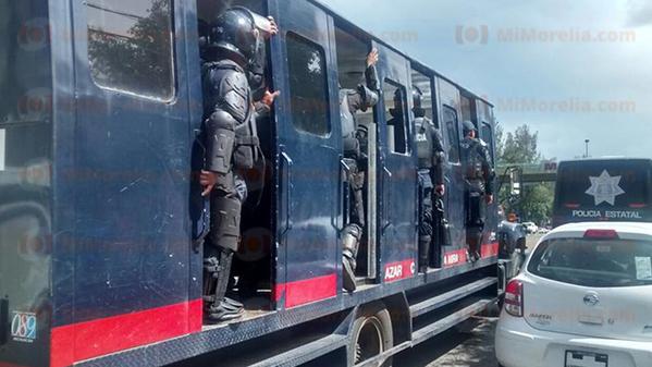 A las 13:30 horas, los normalistas llegaron a las oficinas de la SSE, ubicadas en avenida Siervo de la Nación, a bordo de 6 autobuses, los cuales colocaron después para bloquear el paso a la carretera Morelia-Pátzcuaro, exigiendo el pago de becas.