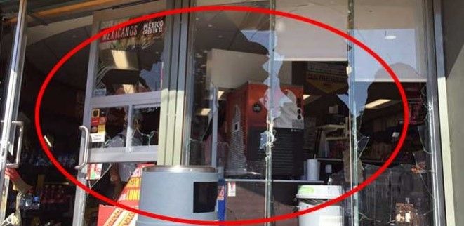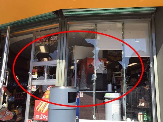 Alrededor de 20 normalistas, que portaban capuchas, palos y tubos, entraron al Oxxo, tiraron estantes con mercancía y al salir golpearon los cristales y a rompieron los vidrios de establecimiento. Testigos señalaron que la tienda no fue saqueada.