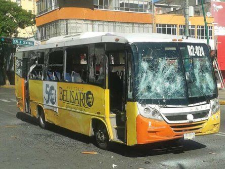 Posteriormente destrozaron el parabrisas de un autobús de pasajeros color amarillo, llamados en la zona como “ConejoBus”