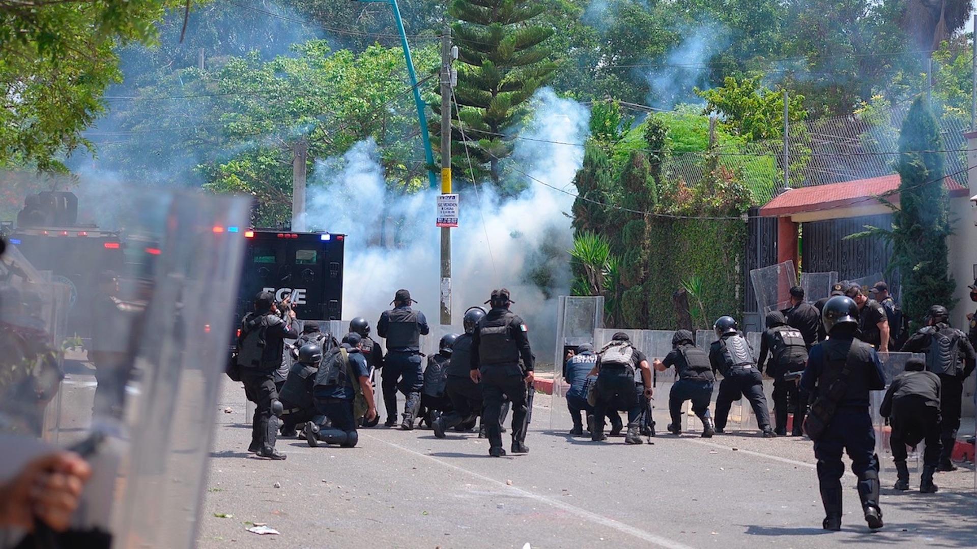 El enfrentamiento ocurrió cuando los normalistas intentaron ingresar a una instalación de la Secretaría de Seguridad y Protección Ciudadana (SSPC) de Chiapas, que se ubica a menos de 500 metros de la escuela, informaron fuentes oficiales.