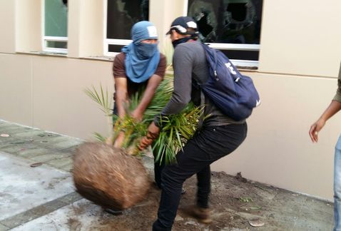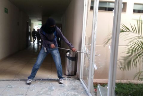 En el inmueble, los inconformes rompieron cristales, equipo de cómputo y material de oficina para después prender fuego en un módulo de seguridad.