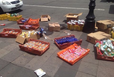 A la llegada de la fuerza policíaca, los estudiantes emprendieron la huida y comenzaron a arrojar contra los uniformados la mercancía que se encontraba en las unidades que habían retenido.