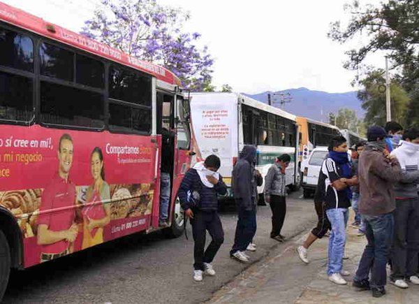 Los normalistas buscan trasladarse en las unidades a la caseta de San Pablo Huitzo para protestar en contra de la Reforma Educativa