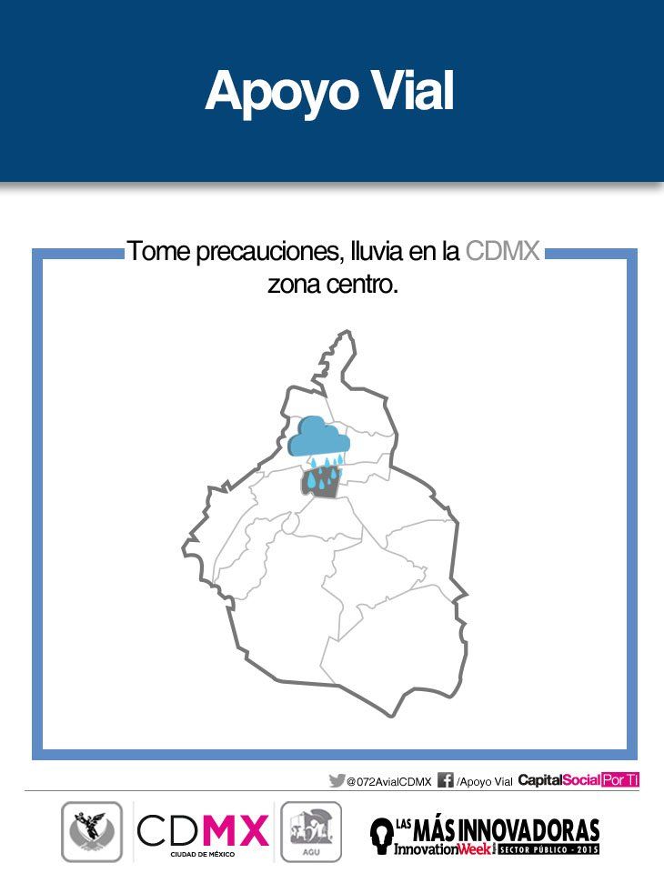 “Maneje con precaución y use el cinturón de seguridad, se registra #Lluvia en la zona #Norte de la #CDMX”, escribió en su cuenta de Twitter @072AvialCDMX.