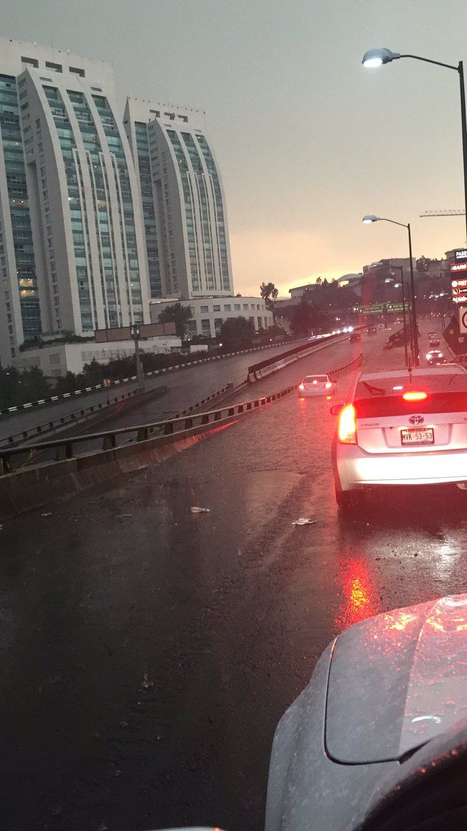 También se inundó esta tarde el puente de Glorieta del Hospital Ángeles Interlomas, en la incorporación a la autopista Chamapa-Lechería.