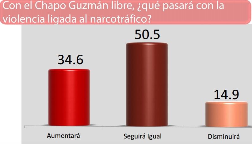 A pesar de que los internautas que contestaron la encuesta afirman que El Chapo Guzmán es el mayor capo del narcotráfico mexicano (86 por ciento), más de la mitad considera que la violencia en México seguirá igual.