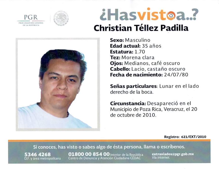 Autoridades presuntamente vinculadas a organizaciones criminales fueron responsables de la desaparición forzada de Christian Téllez, ocurrida en Veracruz en 2010
