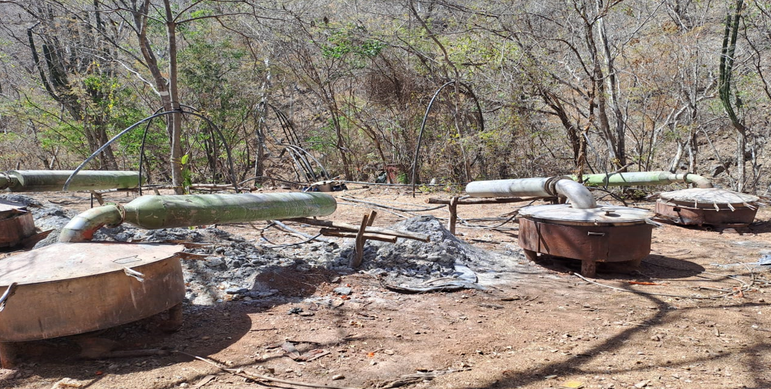 En El Rosario, se aseguraron dos armas largas, 36 cargadores, cartuchos de diversos calibres, 31 artefactos explosivos improvisados, dos drones, equipo táctico diverso y cargadores para equipos de comunicación.
