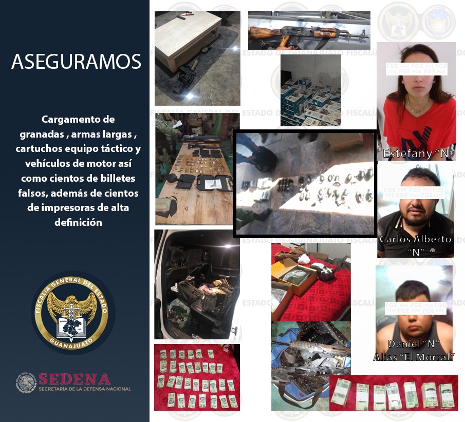 La Fiscalía General del Estado de Guanajuato informó que en el operativo realizado ayer en la zona Laja-Bajío se logró la detención de tres personas, así como el aseguramiento de cientos de billetes falsos.