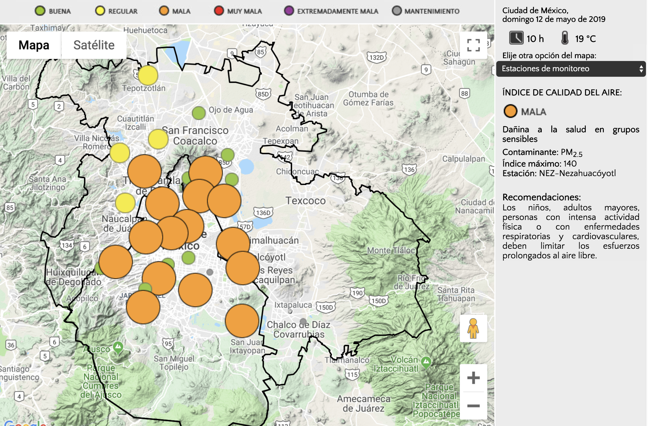 Agregó que en los municipios del Estado de México y en el resto de las alcaldías capitalinas que integran la zona metropolitana, la calidad del aire es de regular a buena, toda vez que los valores se encuentran por debajo de los 100 puntos.