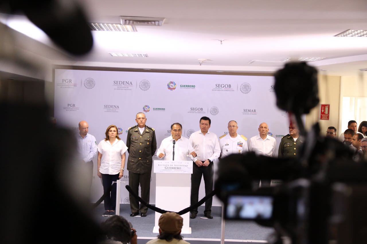 Al término de la reunión con el gabinete de seguridad nacional, el titular de la Secretaría de Gobernación (Segob), Miguel Ángel Osorio Chong y el gobernador de Guerrero, Héctor Astudillo, ofrecieron una rueda de prensa.