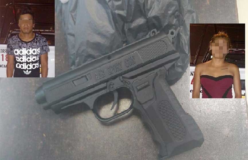 De acuerdo con el reporte policial, una pareja de jóvenes de 18 y 17 años, sometió a una mujer y su hijo cuando viajaban en un vehículo compacto posteriormente los amenazaron con una pistola de juguete y obligaron a la mujer a retirar de un cajero automático cinco mil pesos.