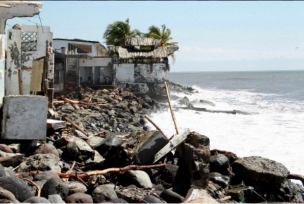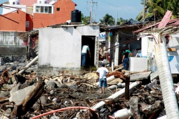Y es que la playa prácticamente desaparecido dejando en su lugar un montón de piedras, sillas de platico rotas, zapatos, sandalias, láminas de asbesto, pedazos de palapa, lazos, y otros artículos destruidos.