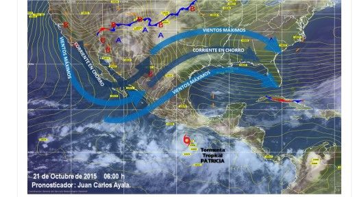 El Servicio Meteorológico Nacional (SMN) alertó que la tormenta tropical Patricia se localizará frente a las costas de Oaxaca y Guerrero e interactuará con una baja presión ubicada en las costas de Tabasco y Campeche, así como con un canal de baja presión extendido frente a las costas de Veracruz.Dicha combinación provocará una amplia zona de fuerte actividad convectiva con potencial de lluvias puntuales torrenciales en Oaxaca y Chiapas; intensas en Veracruz y Guerrero; muy fuertes en San Luis Potosí, Hidalgo, Puebla y Tabasco; fuertes en Campeche y Yucatán y de menor intensidad en Quintana Roo.
