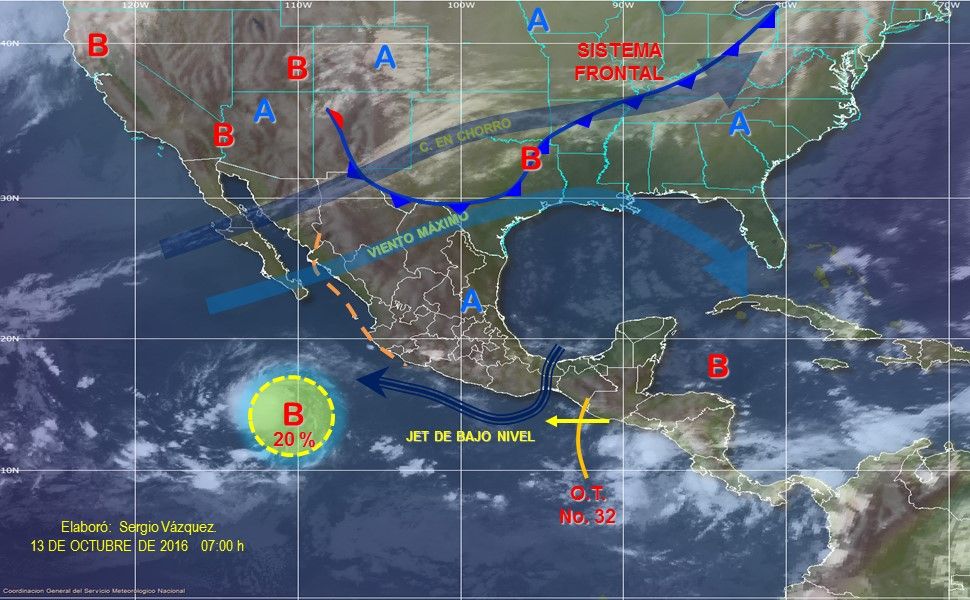 La onda tropical 32, así como un canal de baja presión, provocará tormentas y lluvias fuertes en el algunos estados del país