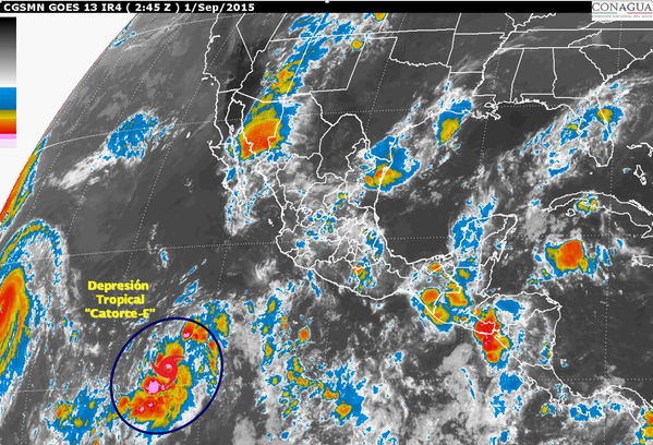 Por su parte, el Servicio Meteorológico Nacional (SMN) dio a conocer que en los próximos días la depresión tropical 14-E se aproximará a la costa occidental de Baja California Sur como tormenta tropical, con el nombre de Kevin.