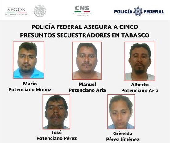 Los detenidos son Mario Potenciano Muñoz, Manuel Potenciano Aria, Alberto Potenciano Aria, José Potenciano Pérez y Griselda Pérez Jiménez.