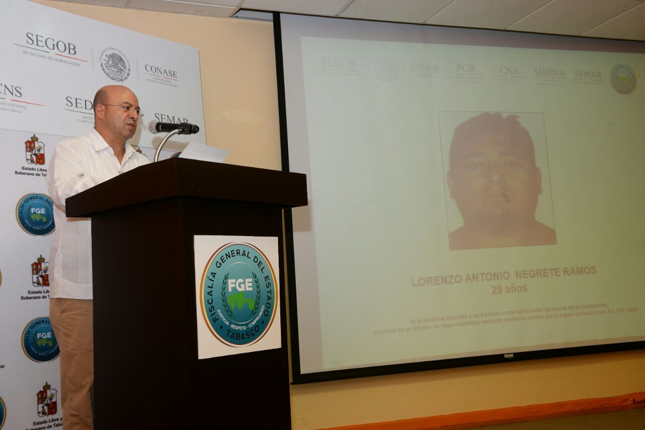 El coordinador nacional antisecuestros Renato Sales anunció en las instalaciones de la Fiscalía General del Estado de Tabasco, la captura de cinco presuntos integrantes de una banda de secuestradores que operaban en Macuspana, Tabasco.