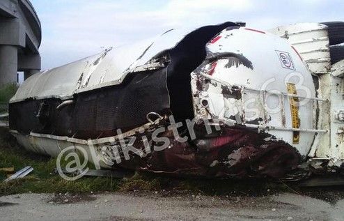 Las autoridades ya arribaron al lugar para realizar las labores de limpieza y del retiro de la pesada unidad.