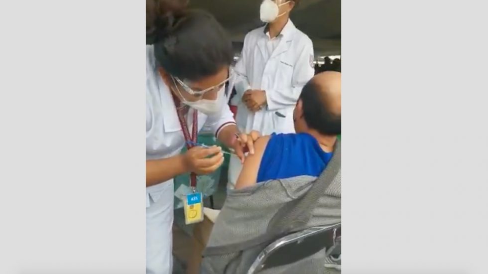 En redes sociales se viralizó la grabación de una aplicación de vacuna contra COVID-19 a un adulto mayor, en donde solo le aplican el piquete de la jeringa, pero no le aplican el líquido con el biológico.