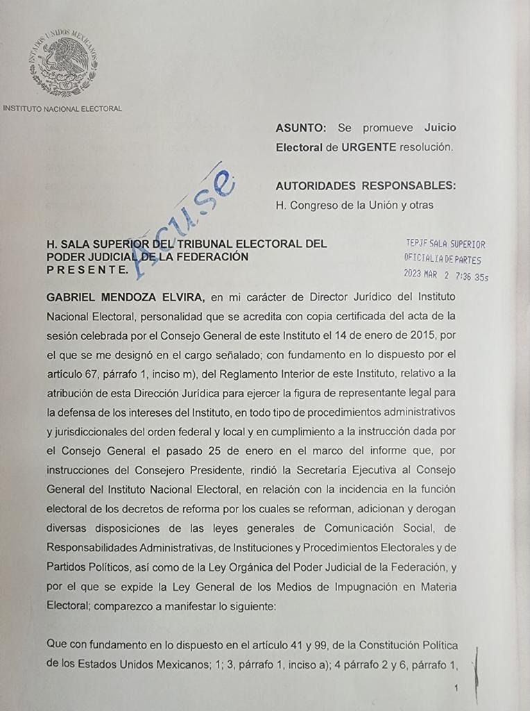 Si bien el Instituto Nacional Electoral acatará el cese de Jacobo Molina interpuso un juicio electoral ante el Tribunal Electoral del Poder Judicial de la Federación al considerar inconstitucional el Plan B electoral.