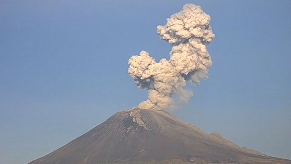 Esta mañana el volcán Popocatépetl registró al menos tres explosiones con exhalaciones de vapor de agua, gases y ceniza que el viento dispersa hacia el nor-noroeste de Puebla.