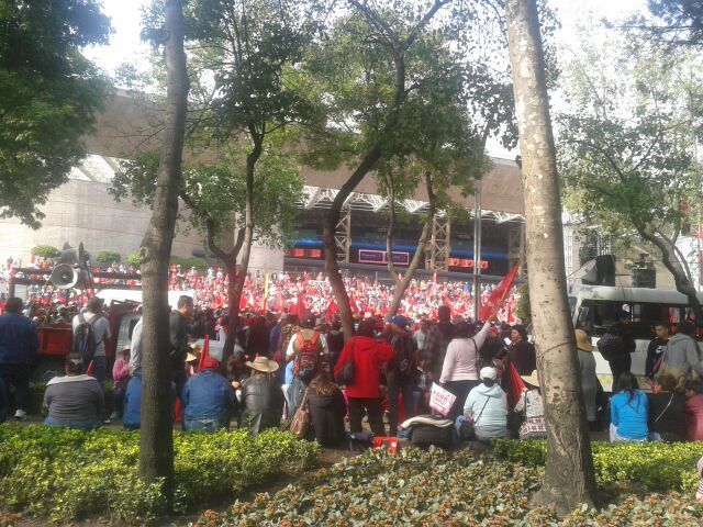 Desde el inicio de esta mañana, se registra una fuerte presencia de manifestantes en Paseo de la Reforma.