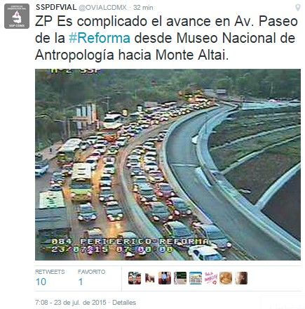 Por tanto, el avance es complicado desde el Museo Nacional de Antropología hacia Monte Altai, mientras que un carril de Paseo de la Reforma está afectado desde el Ángel de la Independencia hasta Lieja. En este caso la alternativa es el Circuito Interior.