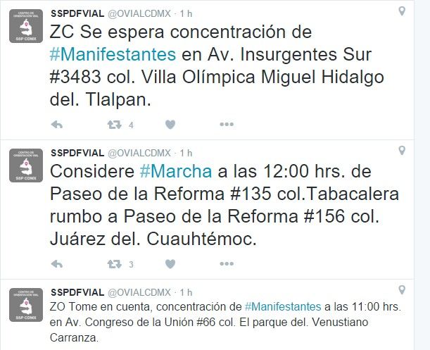 Asimismo, dio a conocer que en el transcurso del día se llevará a cabo una concentración en Av. Insurgentes Sur 3483, colonia. Villa Olímpica.