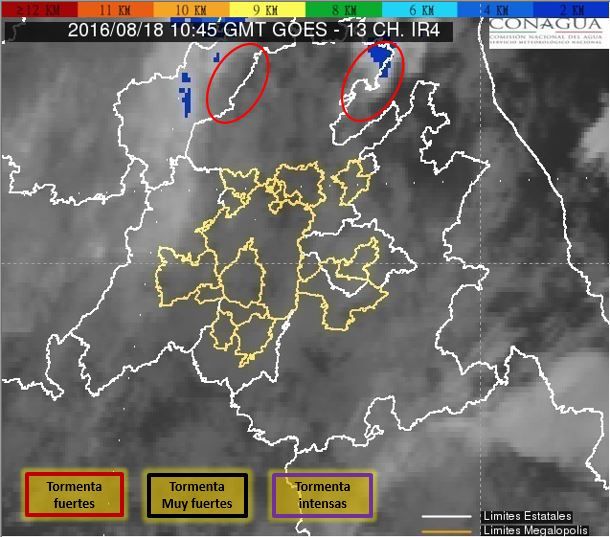En la mayor parte del Valle de México se presentará cielo nublado en gran parte del día con potencial para lluvias e intervalos de chubascos y tormentas puntuales fuertes principalmente en el transcurso de la tarde y noche, acompañada de descargas eléctricas y posible caída de granizo.