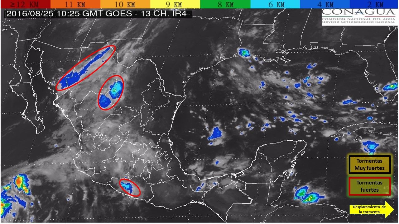Detalló que debido a un canal de baja presión que se mantendrá sobre el interior del país también se presentarán tormentas locales fuertes en Sonora, Coahuila, Durango, Zacatecas y Aguascalientes.