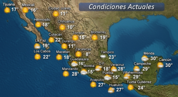 Puntualizó que los termómetros podrían registrar temperaturas máximas de 35 a 40 grados Celsius en los estados de San Luis Potosí, Veracruz, Tabasco, Campeche, Yucatán y Quintana Roo.