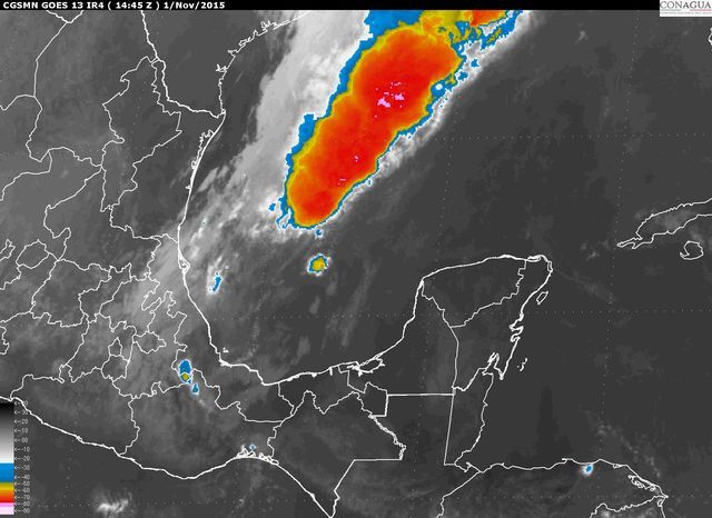 En el Golfo de México dominará cielo medio nublado a nublado, 80 por ciento de posibilidad de precipitaciones intensas en Veracruz y Tabasco y de menor intensidad en Tamaulipas, así como clima templado a muy caluroso y evento de Norte con rachas de viento de hasta 60 kilómetros por hora en las costas de Tamaulipas y Veracruz.