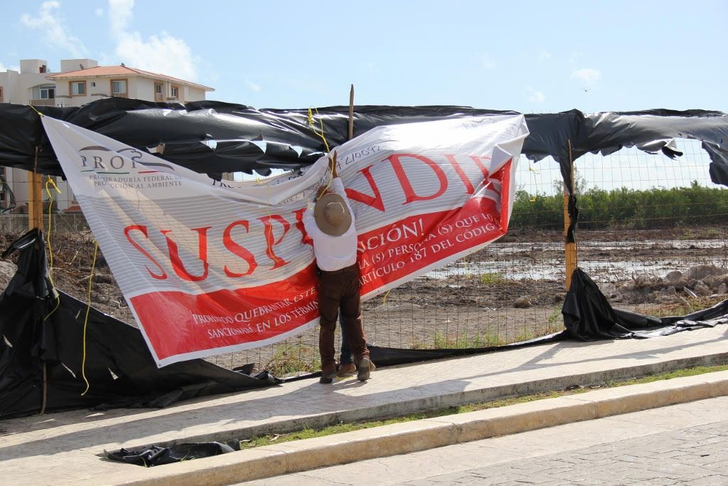 La Procuraduría Federal de Protección al Ambiente (PROFEPA) ordenó la suspensión total, no permanente, de 10 lotes donde se estaba construyendo el proyecto Malecón Cancún-Tajamar, en el estado de Quintana Roo.