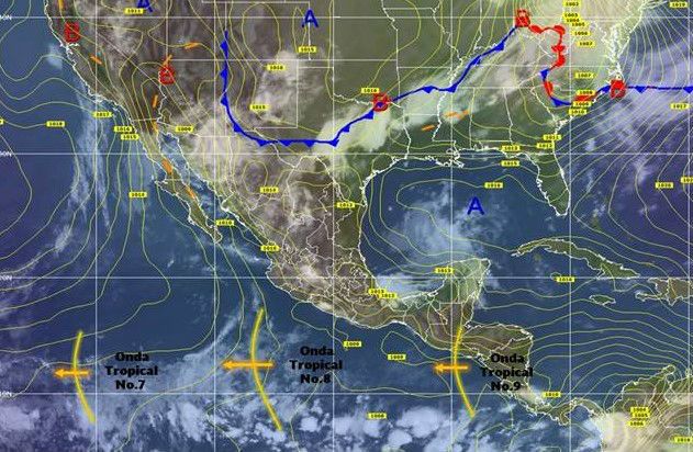 El organismo también indicó que la onda tropical número 9, se extenderá sobre el sureste del país y provocará potencial de lluvia muy fuerte con tormenta eléctrica y granizo en Oaxaca; fuerte en Veracruz y Chiapas y de menor intensidad en Tabasco, Campeche, Yucatán y Quintana Roo.