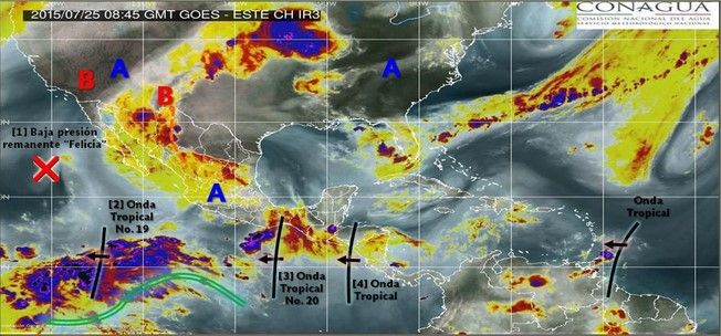 Habrá lluvias muy fuertes en Guerrero, Veracruz y Oaxaca; así como fuertes en Chiapas y de menor intensidad en Tabasco debido a la onda tropical número 20 que se desplaza con dirección oeste.