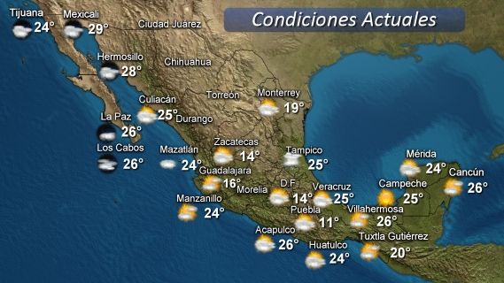 Las temperaturas serán de 35 a 40 grados centígrados en Baja California Sur, Baja California, Sonora, Coahuila, Nuevo León, Tamaulipas, San Luis Potosí, Hidalgo, Veracruz, Sinaloa, Nayarit, Jalisco, Michoacán, Guerrero, Oaxaca, Chiapas, Tabasco, Campeche, Yucatán y Quintana Roo.