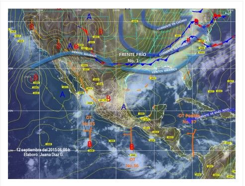 Asimismo la onda tropical número 36 se encontrará al sur de la costa de Guerrero, ocasionando potencial de lluvias puntuales intensas en Oaxaca, muy fuertes en Estado de México y Chiapas, fuertes en Guerrero, Morelos y Distrito Federal.