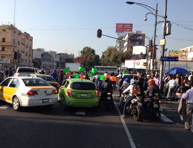 Un grupo de manifestantes afectó desde esta mañana la circulación en la avenida de Los Insurgentes, a la altura de Ribera de San Cosme.