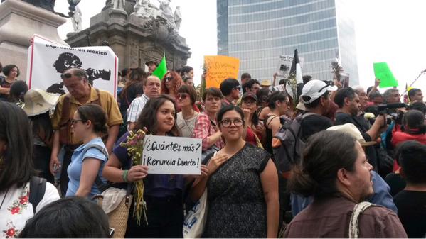 Este domingo por la tarde, reporteros y fotógrafos, así como miembros de la sociedad civil, realizaron una concentración en el Ángel de la Independencia para demandar justicia tras el asesinato de Rubén Espinosa Becerril.