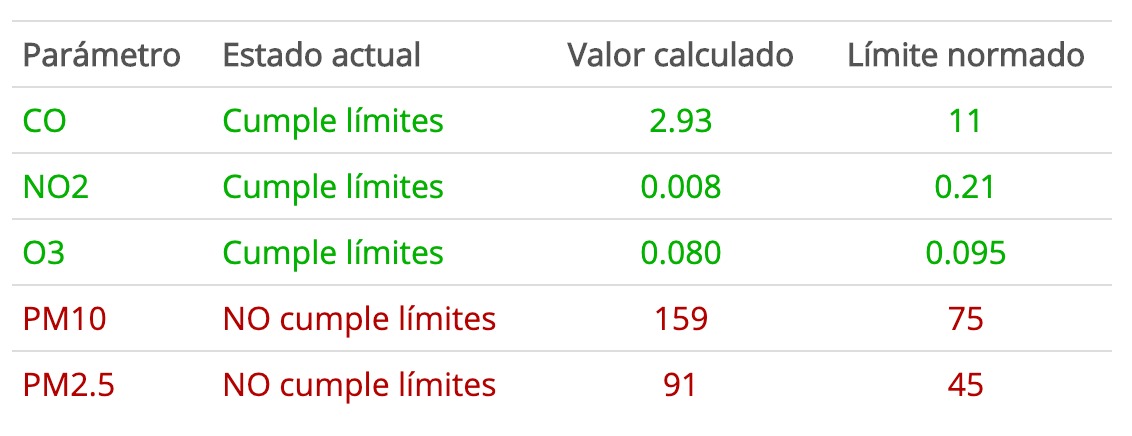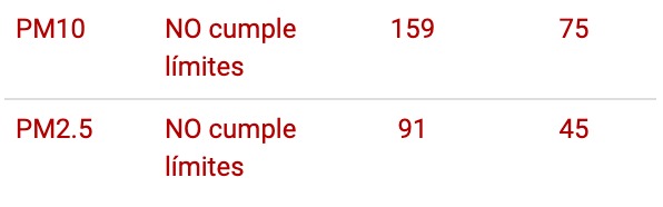 Los datos de SINAICA reportan en la Estación Las Ninfas niveles máximos de 159. Datos de https://sinaica.inecc.gob.mx/