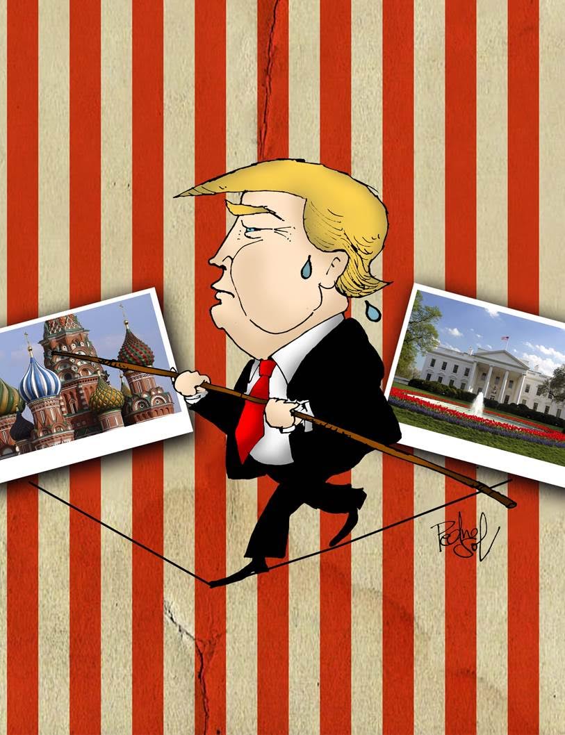 El caricaturista Pedro Sol hizo referencia a las continuas acusaciones en contra de Trump por sus presuntos vínculos con Rusia