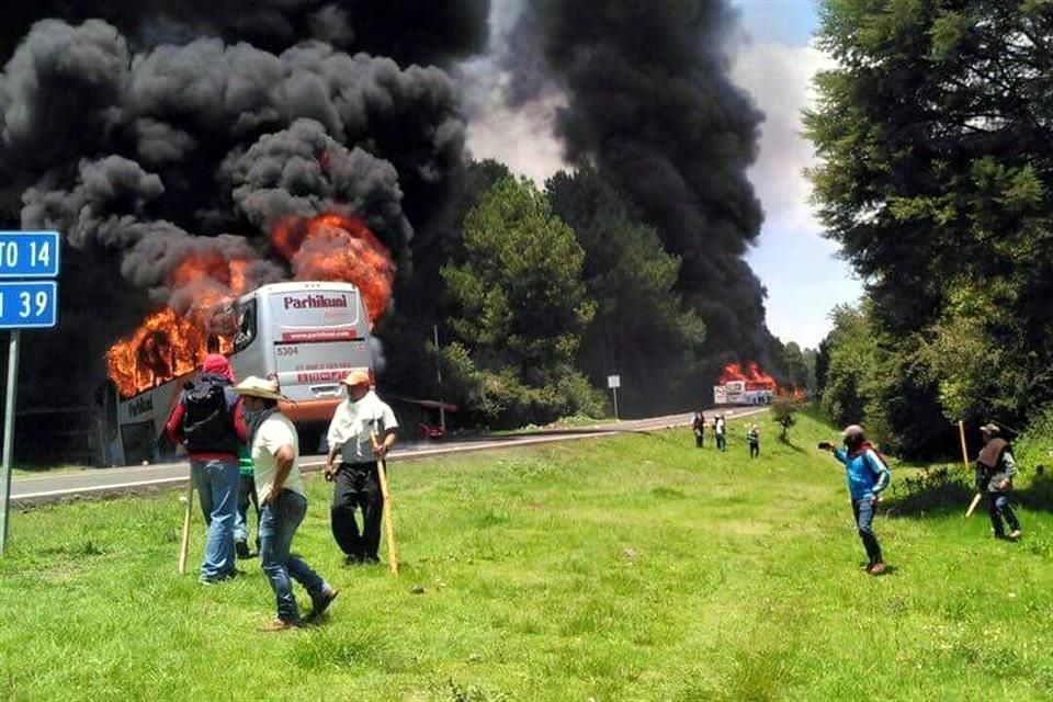 En el punto más álgido del choque, los matriculados de las distintas normales del estado, aparentemente recurrieron a la quema de tres autobuses a modo de presión hacía las autoridades.