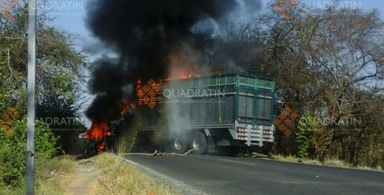 Reportan autoridades que en diversos puntos del estado maestros y normalistas de Michoacán quemaron al menos tres camiones en carreteras