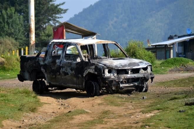 Queman vehículos oficiales en Nahuatzen, Michoacán - patrulla-incendiada