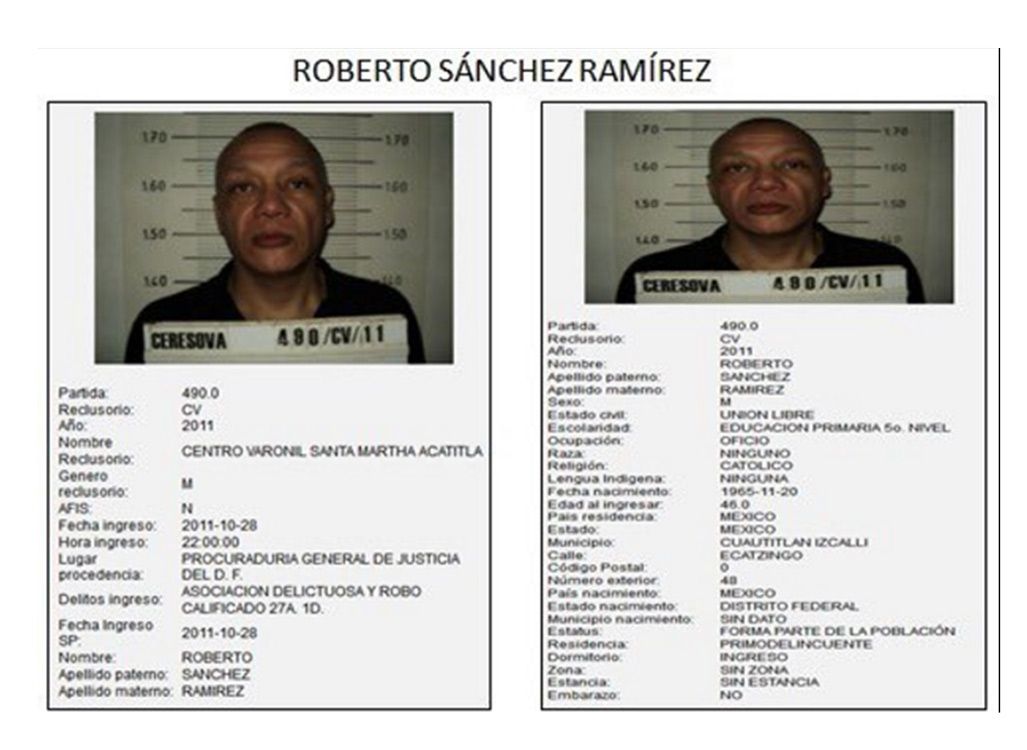 Roberto Sánchez Ramírez, también conocido como Miguel Márquez Montes, Roberto Sánchez Ramos o Roberto Daniel Sánchez, cuenta con cuatro órdenes de reaprehensión emitidas por los juzgados 25, 36, 34 y 54 de lo penal, con sede en la Ciudad de México, por su probable participación en la comisión de los delitos de privación ilegal de libertad agravada, asociación delictuosa, y robo calificado.