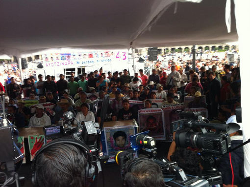 Tras reunirse con el presidente de la República, padres de los 43 normalistas desaparecidos se trasladaron al campamento que tienen instalado en la plancha del Zócalo desde donde ofrecieron una conferencia de prensa.